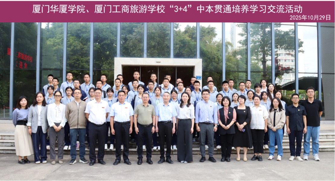 10月29日,我校与厦门工商旅游学校开展"3+4"中本贯通培养项目交流活动,标志着两校合作培养的第二届学生正式进入联合培养体系。这是该项目在去年成功开启基础上的深入推进,为厦门地区职业教育高质量发展再添新动能。学校校长谢增鸿、副校长唐维萍,厦门工商旅游学校党委书记杨经葵、校长蔡世水、副校长章正荣,以及两校相关部门负责人参加交流活动。