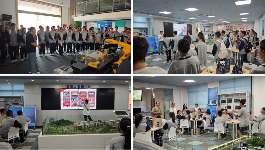 随后“3+4”试点项目2025级新生参观了我校教育部互联网+中国制造2025产教融合创新基地、教育部—中兴通讯ICT产教融合创新基地等实验实训场所。信息与智能机电学院师生为项目学生进行了详细讲解与实操演示,并开展了深入的互动交流。