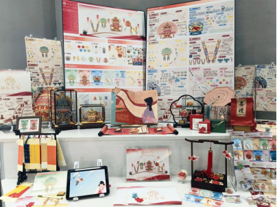 钟楼常勋艺术馆展区以文创设计、包装设计、品牌设计等展品为主,这些作品将非遗传统、社会热点等主题以可视化的方式呈现,富有想象力。例如,文创作品《宋韵雅艺》以“宋代四艺”为文化内核通过现代设计语言转译古典生活美学,达成传统美学与现代设计的创新融合;品牌设计作品《锦辰好礼》深度挖掘中国传统婚俗文化,提取凤冠、万工轿、团扇、龙凤烛、霞帔等传统婚嫁符号,转化为品牌视觉元素与文创产品,打造兼具文化价值与审美意趣的婚庆礼赠品牌。