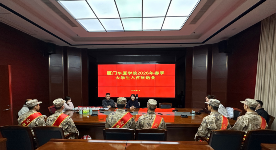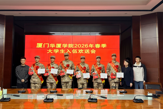 3月19日上午,厦门华厦学院在湖里区人民武装部举办2026年春季大学生新兵入伍欢送仪式,为即将奔赴军营、开启军旅生涯的华厦学子举行庄严而热烈的出征礼。校党委副书记陈熙贞、校征兵工作办公室副主任林伟程、学生社区团工委书记郭荣鋆、全体入伍新兵及新兵家长代表出席仪式,共同见证这一光荣而神圣的历史时刻。