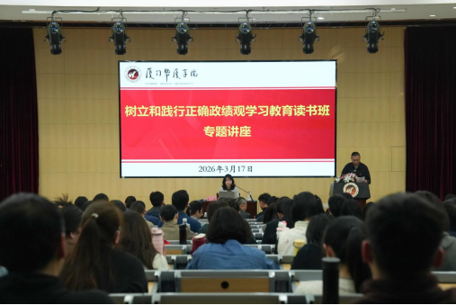 2026年3月17日下午,厦门华厦学院树立和践行正确政绩观学习教育读书班首场专题学习报告会在明德2报告厅举行。厦门大学马克思主义学院博士生导师冯霞教授受邀作题为“牢固树立和践行正确政绩观 ,奋力开创事业新局面”的专题辅导。学校党政领导、中层干部、党员师生参会学习。会议由校党委宣传部部长孙键主持。
