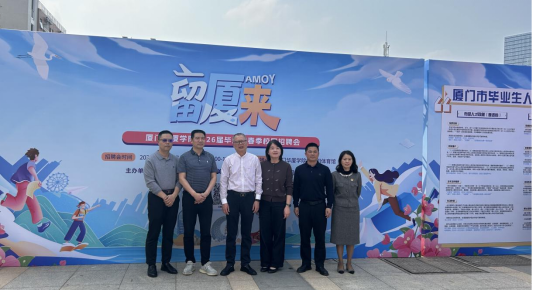 2026年3月24日下午,“留厦来 更精彩”厦门华厦学院2026年春季校园招聘会在柯朝阳体育馆前广场顺利举办。本次招聘会同步融入学校就业服务周活动,以"招聘+服务"双模式为毕业生搭建全方位就业支持平台,全力助推毕业生精准择业、留厦就业,为区域发展汇聚青年人才力量。集美区人力资源和社会保障局局长黄志盛、副局长蒲杰斌、就业中心负责人钟添富及市人才中心工作人员莅临招聘会现场指导工作,肇庆市高要区人力资源和社会保障局专程带队辖区内12家汽车零部件产业优质企业组团亮相。招聘会精准整合省内外优质企业资源,共吸引101家用人单位踊跃参会,现场累计发布212个招聘岗位、1411个招聘职位,吸引全校2188名学子到场参与求职对接,为2026届毕业生打造了高质量、多元化的就业对接阵地。校党委书记徐志怀等校领导、各二级学院主要负责人深入招聘会现场。