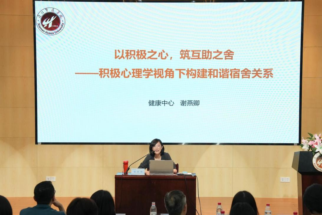 健康中心主任谢燕卿围绕宿舍和谐建设展开分享,结合积极心理学与PERMA幸福模型,聚焦积极心态与朋辈互助,讲解人际沟通、情绪管理等相处方法,多维度普及朋辈互助知识,引导学生善待自我、互帮互助,共同营造温暖融洽的宿舍氛围。