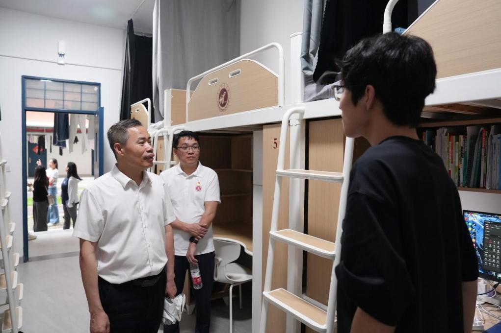 专题分享结束后,徐志怀一行走访学生公寓,实地调研宿舍管理与文化建设,倾听学生诉求,进一步找准工作切入点,推动“健康第一”理念融入“一站式”学生社区的建设工作中,让学生社区真正成为温暖、安全、健康的家园。