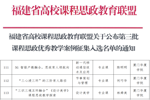 近日,福建省新工科教育联盟,福建省高校课程思政教育联盟相继公布了“第三批新工科教育优秀教学案例入选名单”及“第三批课程思政优秀教学案例征集入选名单”。我校有1个案例入选第三批新工科教育优秀教学案例,3个案例入选第三批课程思政优秀教学案例。