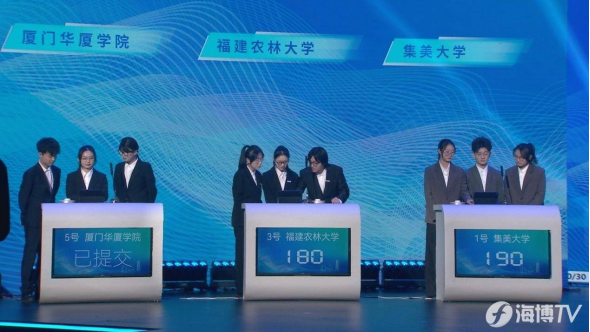 本届选拔赛吸引了包括厦门大学、福建农林大学等全省50所高校的学子参赛,经过线上APP答题、现场淘汰赛等环节,厦门大学、福建农林大学、厦门华厦学院等6支队伍进入决赛。决赛围绕海洋生物多样性、海洋生态、海洋经济、海洋文化、海洋强国等话题,设计了视频、文字、图片题等丰富题型。