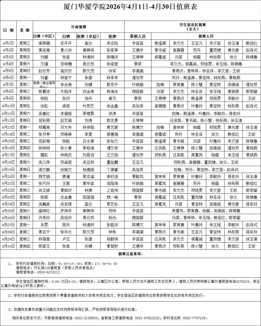 上一条:厦门华厦学院2026年清明节放假通知 下一条:华厦 | 学校2026年专任教师招聘启事