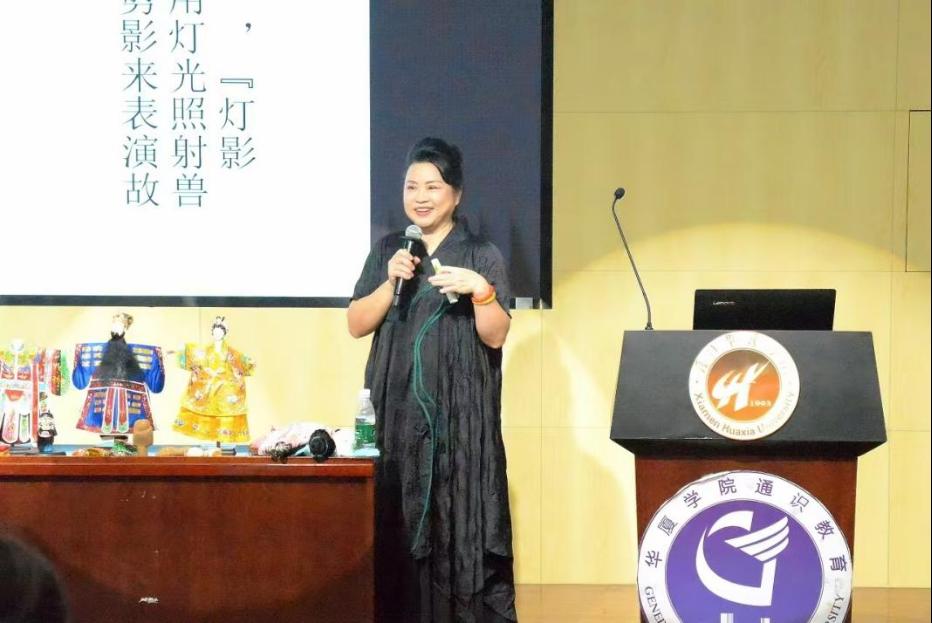 2025年10月21日下午,厦门华厦学院人文通识系列讲座第258期《福建布袋木偶戏》在明德厅顺利举办。本次讲座特邀福建省级非物质文化遗产传承人、福建民间文艺家协会副主席庄晏红女士,她结合实物与图文资料,解读布袋木偶戏的艺术特色与传承价值。我校共300余名师生到场参与,近距离感受闽南传统艺术魅力。