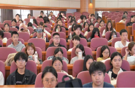 讲座结束后,我校通识课程建设委员会主任刘海翔教授为殷露颁发致谢旗,并合影留念。
